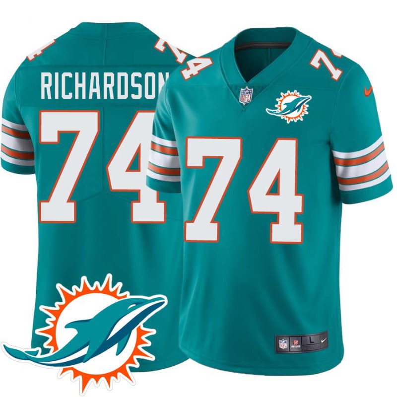Dolphins #74 John Richardson Additional Chest Dolphin Patch Aqua Jersey