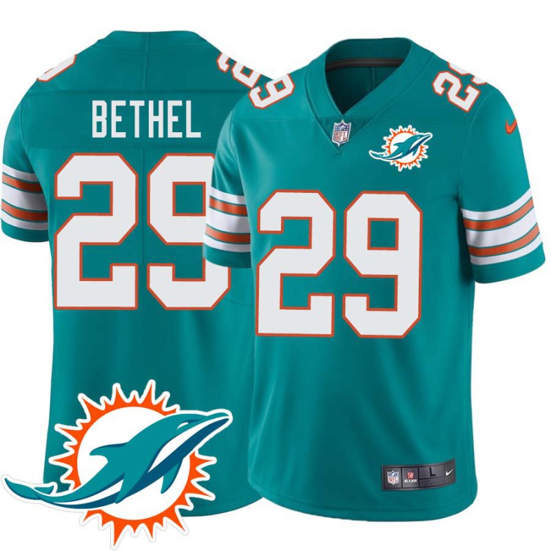 Dolphins #29 Justin Bethel Additional Chest Dolphin Patch Aqua Jersey