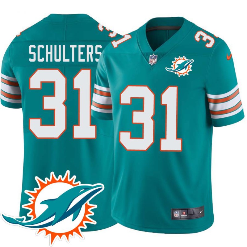 Dolphins #31 Lance Schulters Additional Chest Dolphin Patch Aqua Jersey