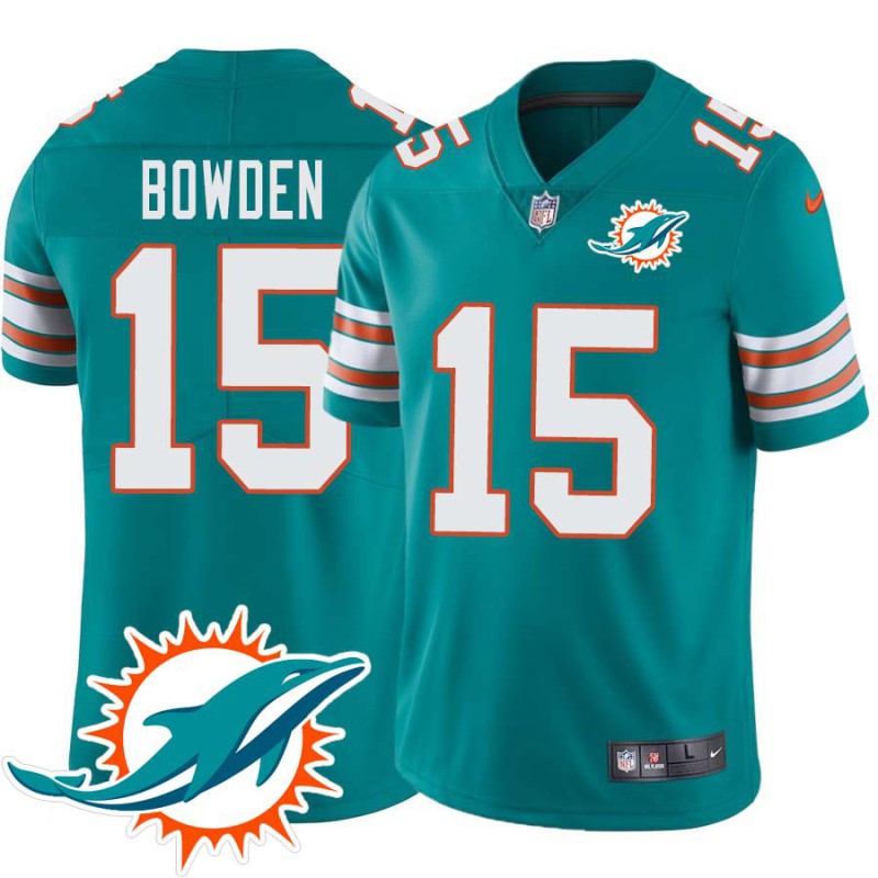 Dolphins #15 Lynn Bowden Jr. Additional Chest Dolphin Patch Aqua Jersey