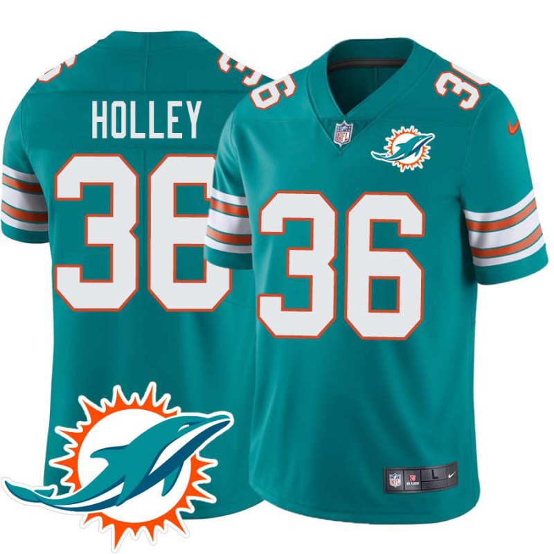 Dolphins #36 Nate Holley Additional Chest Dolphin Patch Aqua Jersey