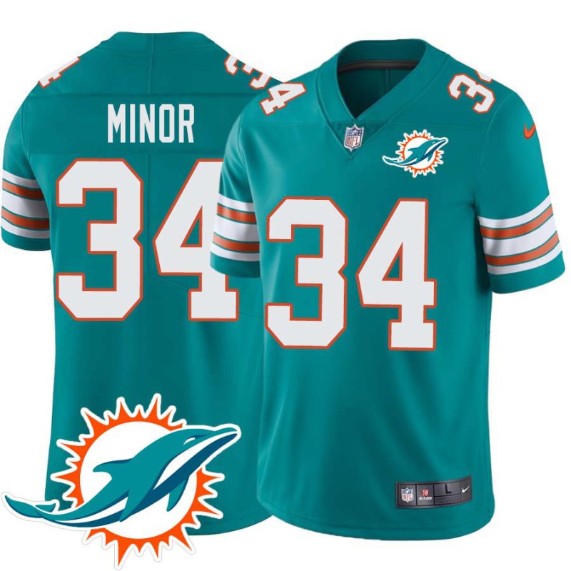 Dolphins #34 Travis Minor Additional Chest Dolphin Patch Aqua Jersey